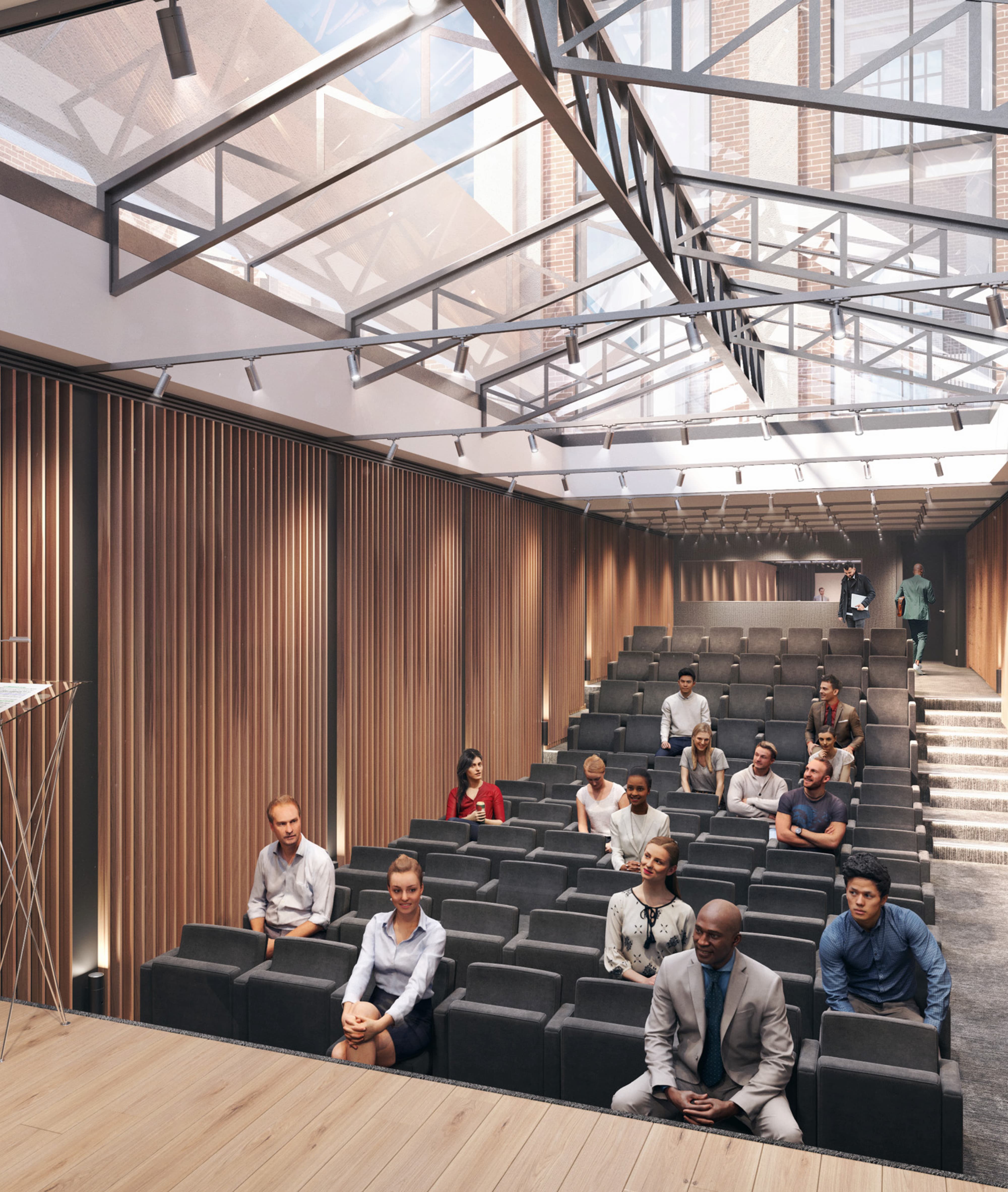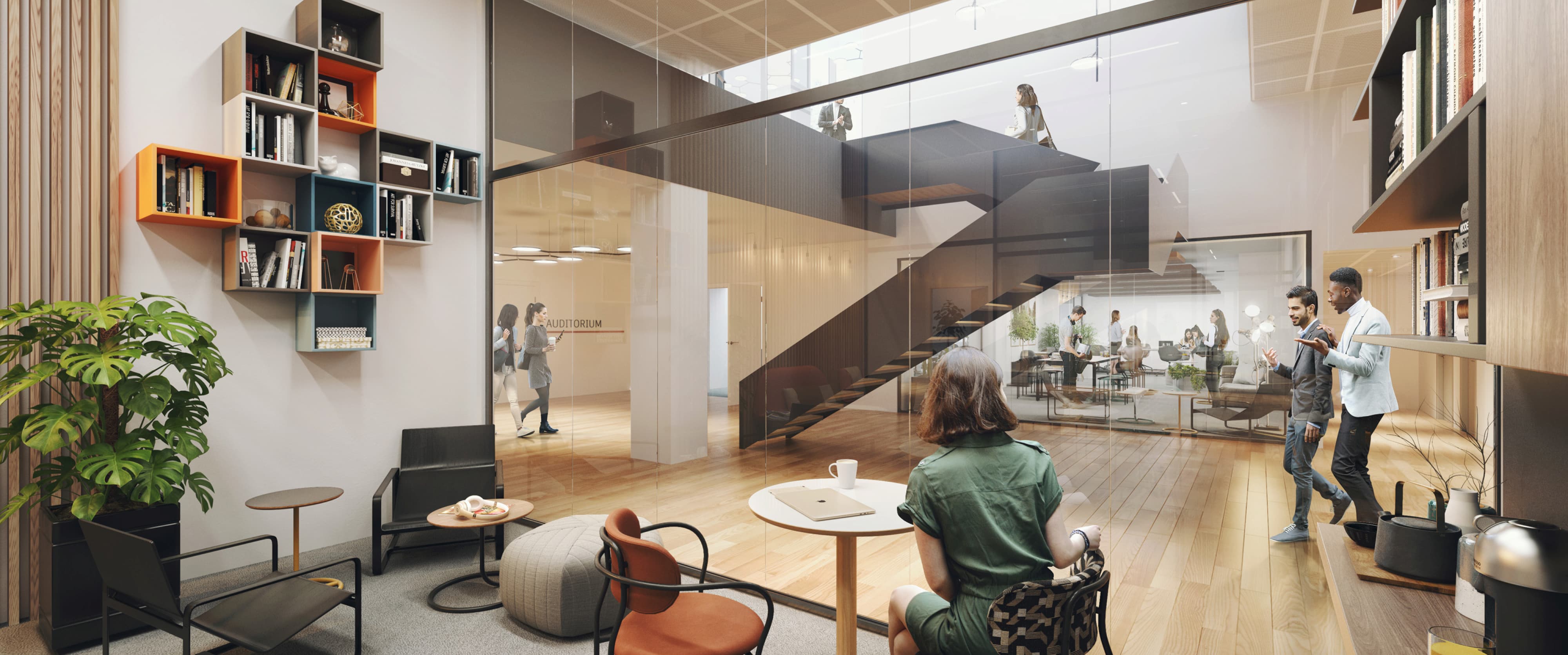 Le programme ouvert et flexible, et en même temps laissant la possible réversibilité du site, offrira une multitude de services, avec par exemple des espaces café, des salles de réunion/travail, des espaces sportifs, pour dynamiser et accroître l’attractivité de l’immeuble.